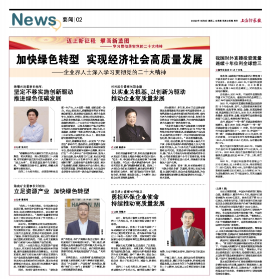 10月16日至22日,中國共產黨第二十次全國代表大會在北京召開。杉杉控股董事局主席、杉杉股份董事長鄭永剛深入學習貫徹黨的二十大精神,并接受上海證券報采訪。他表示:“過去十年,中國經濟社會發展取得了舉世矚目的成就。作為這一偉大事業的參與者、奮斗者和見證者,我們深感驕傲和自豪。黨的二十大報告為我們奮進新征程、建功新時代提供了鮮明的行動指南。我們要用實際行動學習好、領會好、貫徹好、落實好黨的二十大精神,奮力推動公司更高質量發展。”